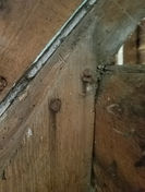 end brick chimneys and a foundation of Flemish bond brick propped with fieldstones.